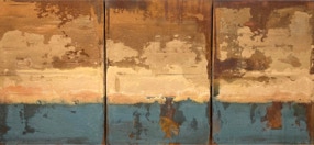 „Erde und Wasser“ / Acryl, Sand, Pigment auf Baumwollgewebe / 3 mal 40 x 60 cm / 2021